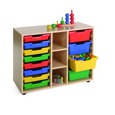 Muebles fabricados en melamina de 19 mm, color haya, cantos de PVC de 2 mm de grosor, acabado por las dos caras. Bordes redondeados para prevenir golpes con cantos vivos. Pies niveladores de PVC de 4 cm, para evitar la humedad y adaptarse a los desniveles. Estos pies pueden ser retirados del mueble para poder superponer diferentes armarios. Las puertas de los armarios con sistema antiatrapamiento de dedos en su cierre. Estante con herrajes de seguridad que evitan la manipulacio por parte de los ninos. Puertas en melamina de colores de 16 mm. con bisagras de gran calidad y multiples regulaciones. Cubetas fabricadas en polipropileno de gran resistencia y son extraibles mediante guias. Tiradores en verde o amarillo. colores disponibles