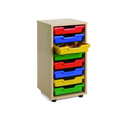 Muebles fabricados en melamina de 19 mm, color haya, cantos de PVC de 2 mm de grosor, acabado por las dos caras. Bordes redondeados para prevenir golpes con cantos vivos. Pies niveladores de PVC de 4 cm, para evitar la humedad y adaptarse a los desniveles. Estos pies pueden ser retirados del mueble para poder superponer diferentes armarios. Las puertas de los armarios con sistema antiatrapamiento de dedos en su cierre. Estante con herrajes de seguridad que evitan la manipulacio por parte de los ninos. Puertas en melamina de colores de 16 mm. con bisagras de gran calidad y multiples regulaciones. Cubetas fabricadas en polipropileno de gran resistencia y son extraibles mediante guias. Tiradores en verde o amarillo.