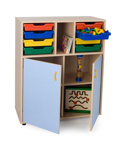 Muebles fabricados en melamina de 19 mm, color haya, cantos de PVC de 2 mm de grosor, acabado por las dos caras. Bordes redondeados para prevenir golpes con cantos vivos. Pies niveladores de PVC de 4 cm, para evitar la humedad y adaptarse a los desniveles. Estos pies pueden ser retirados del mueble para poder superponer diferentes armarios. Las puertas de los armarios con sistema antiatrapamiento de dedos en su cierre. Estante con herrajes de seguridad que evitan la manipulacio por parte de los ninos. Puertas en melamina de colores de 16 mm. con bisagras de gran calidad y multiples regulaciones. Cubetas fabricadas en polipropileno de gran resistencia y son extraibles mediante guias. Tiradores en verde o amarillo.