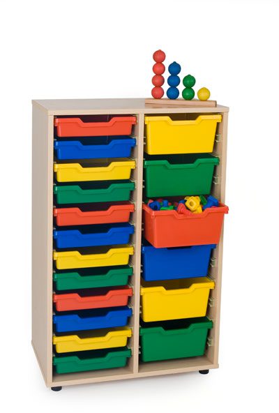 Muebles fabricados en melamina de 19 mm, color haya, cantos de PVC de 2 mm de grosor, acabado por las dos caras. Bordes redondeados para prevenir golpes con cantos vivos. Pies niveladores de PVC de 4 cm, para evitar la humedad y adaptarse a los desniveles. Estos pies pueden ser retirados del mueble para poder superponer diferentes armarios. Las puertas de los armarios con sistema antiatrapamiento de dedos en su cierre. Estante con herrajes de seguridad que evitan la manipulacio por parte de los ninos. Puertas en melamina de colores de 16 mm. con bisagras de gran calidad y multiples regulaciones. Cubetas fabricadas en polipropileno de gran resistencia y son extraibles mediante guias. Tiradores en verde o amarillo.