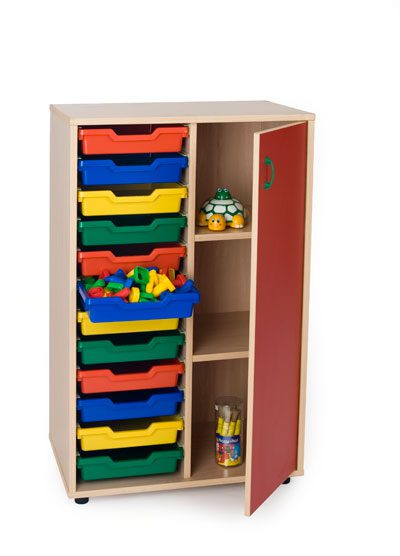 Muebles fabricados en melamina de 19 mm, color haya, cantos de PVC de 2 mm de grosor, acabado por las dos caras. Bordes redondeados para prevenir golpes con cantos vivos. Pies niveladores de PVC de 4 cm, para evitar la humedad y adaptarse a los desniveles. Estos pies pueden ser retirados del mueble para poder superponer diferentes armarios. Las puertas de los armarios con sistema antiatrapamiento de dedos en su cierre. Estante con herrajes de seguridad que evitan la manipulacio por parte de los ninos. Puertas en melamina de colores de 16 mm. con bisagras de gran calidad y multiples regulaciones. Cubetas fabricadas en polipropileno de gran resistencia y son extraibles mediante guias. Tiradores en verde o amarillo. colores disponibles