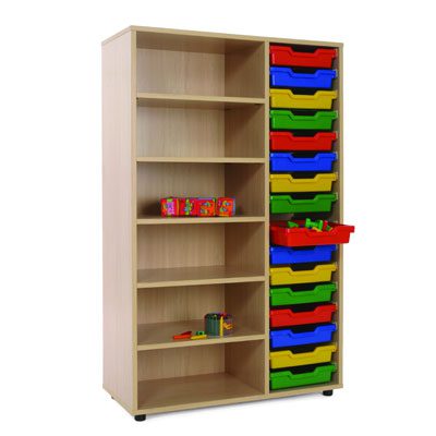 Muebles fabricados en melamina de 19 mm, color haya, cantos de PVC de 2 mm de grosor, acabado por las dos caras. Bordes redondeados para prevenir golpes con cantos vivos. Pies niveladores de PVC de 4 cm, para evitar la humedad y adaptarse a los desniveles. Estos pies pueden ser retirados del mueble para poder superponer diferentes armarios. Las puertas de los armarios con sistema antiatrapamiento de dedos en su cierre. Estante con herrajes de seguridad que evitan la manipulacio por parte de los ninos. Puertas en melamina de colores de 16 mm. con bisagras de gran calidad y multiples regulaciones. Cubetas fabricadas en polipropileno de gran resistencia y son extraibles mediante guias. Tiradores en verde o amarillo.