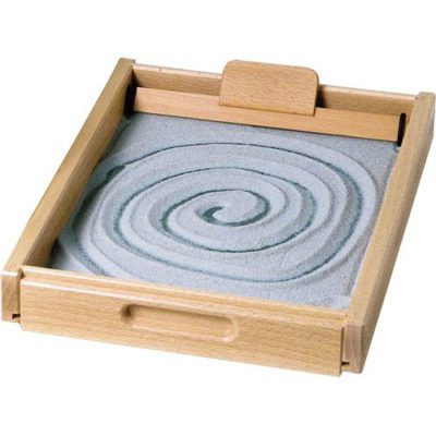 Concepto pedagógico: Desarrollado según conceptos de la pedagogía MONTESSORI. Jugando se estimula la motricidad fi na, la coordinación de movimientos entre mano derecha y mano izquierda, la concentración, la creatividad y la fantasía. La bandeja de arena tranquiliza y relaja.