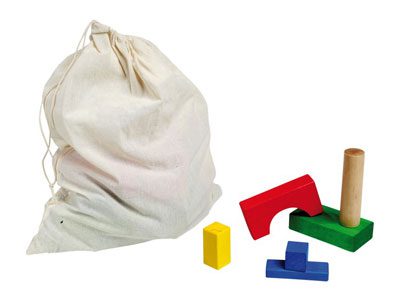 75 piezas. Bloques de construcción de madera, con figuras, formas y colores atractivos para los más pequeños. Para potenciar la creatividad, destreza y sentido de los pequeños.