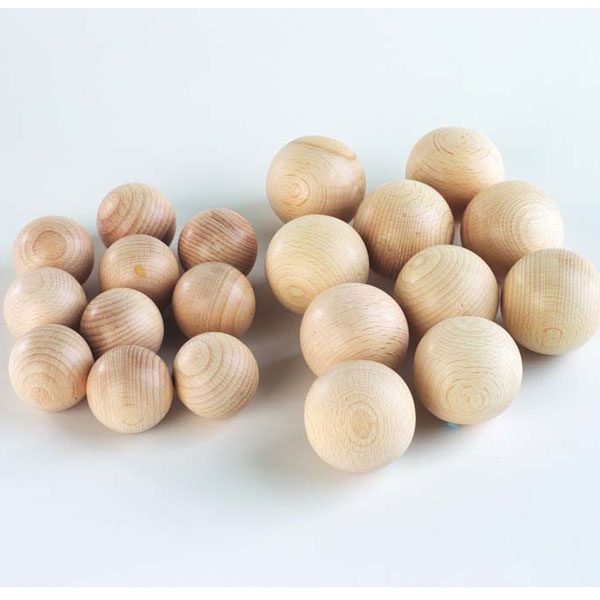 Este set contiene 10 bolas grandes de madera lisa. Tamaño: 60 mm de diámetro.