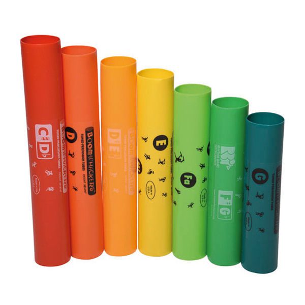 La gama «extensión» propone 7 tubos para alargar la serie contralto; permite ampliar la cantidad de piezas musicales realizables con los boomwhackers.