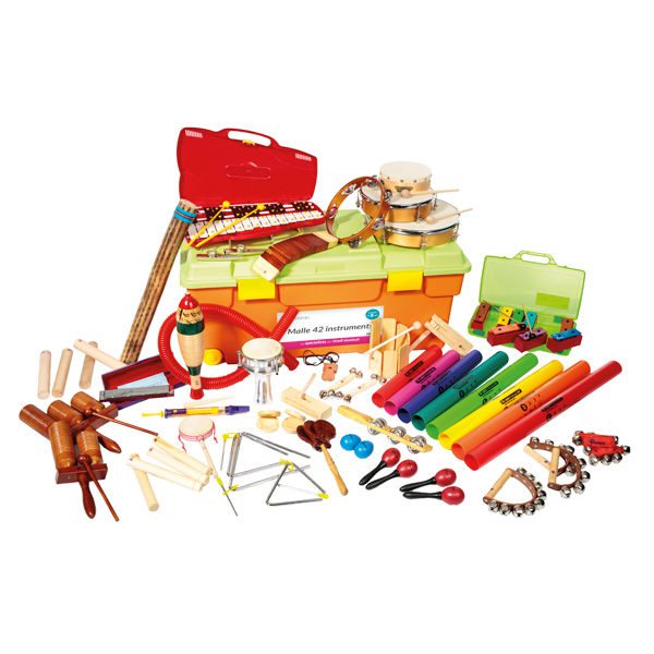 Esta selección de 42 instrumentos ha sido pensada para juegos de audición y para la iniciación rítmica y un acercamiento a la madera, la piel y el metal.