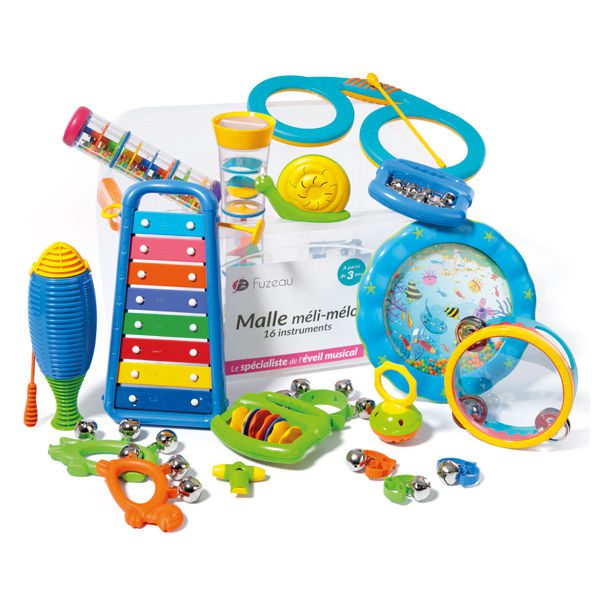 A partir de 3 años Selección de instrumentos para crear sesiones de actividades musicales donde cada niño escogerá su instrumento: los colores y los ritmos animarán la clase.