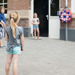 Incluye una diana fabricada en poliéster y 3 pelotas de tela para lanzar.