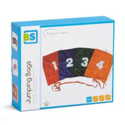 Conjunto de 4 sacos de distintos colores rojo, azul, verde y naranja.