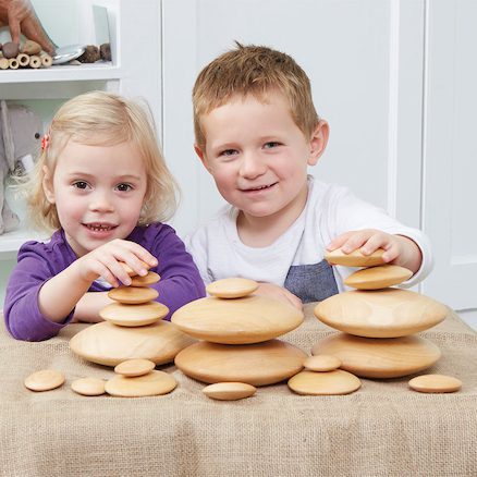 Piedras apilables fabricadas en madera. Se pueden apilar y clasificar.