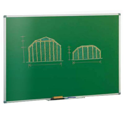 Medidas: 122×150 cm|122×200 cm|122×244 cm|122×300 cm. Con marco de aluminio y cantoneras decorativas. Superficie estratificada verde mate antirreflectante. Suministradas con cajetin de aluminio de 40 cm y elementos de fijacion.
